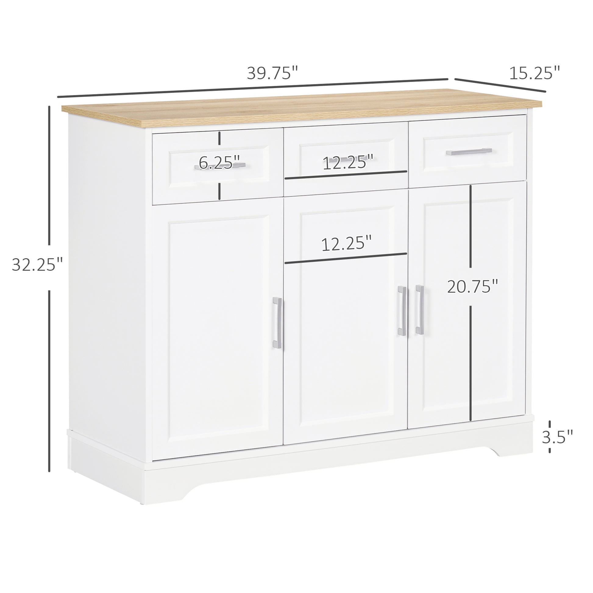 Clean lines, warm tones, serious storage. This white and oak buffet sideboard combines three drawers and two spacious cabinets into one versatile piece that works just as well in a dining room as it does in a living room, entryway, or kitchen. The two-tone finish looks far more expensive than it is.